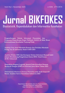 Jurnal Biostatistik, Kependudukan dan Informatika Kesehatan (BIKFOKES) adalah jurnal yang diterbitkan oleh Departemen Biostatistik dan Kependudukan, Fakultas Kesehatan Masyarakat Universitas Indonesia sejak Mei 2020. Jurnal ini diterbitkan secara tri-bulanan, pada bulan Maret, Juli dan November. Jurnal Biostatistik, Kependudukan dan Informatika Kesehatan (BIKFOKES) memiliki fokus pada biostatistika, kependudukan, informatika kesehatan dan reproduksi kesehatan di bidang kesehatan masyarakat guna dapat memberikan pencegahan dan langkah-langkah promosi untuk meningkatkan kesehatan masyarakat. Artikel yang diterbitkan dalam jurnal ini bisa dalam bentuk riset, studi kasus maupun meta-analysis.
